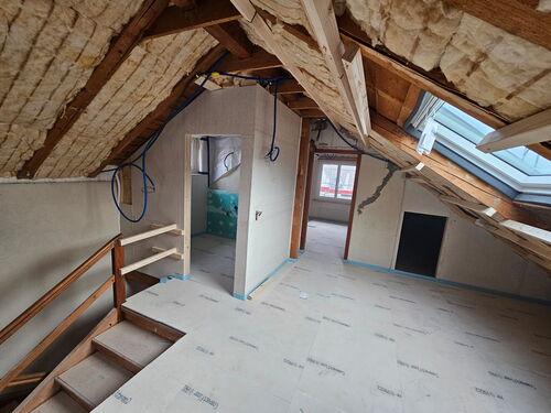 Heizungsersatz neu mit Bodenheizung. Sanierung Beläge und Anstriche, neue Küche, neue Bäder, Schleppgaube.